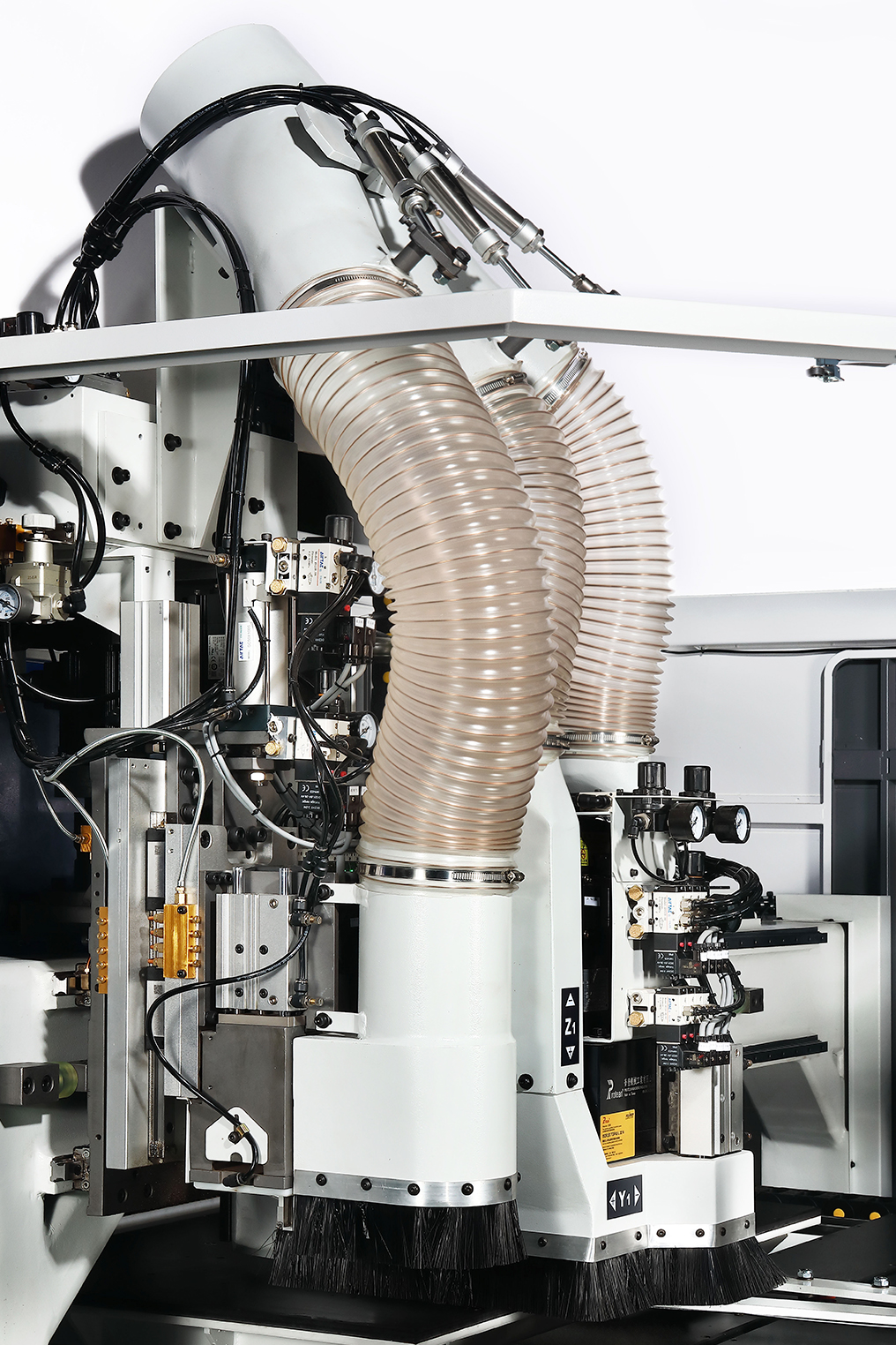 雙鉆包、五刀庫自動換刀、三主軸設計